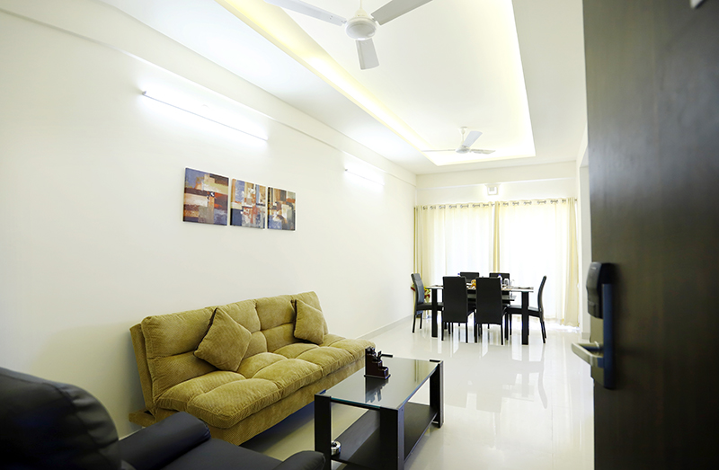 The Bangalore unit consists of 21 air-conditioned rooms in 6 (one 2 BHK-1680 sft, one 3 BHK-2000 sft, three 4 BHK-2200 sft & one 4 BHK Duplex-3500 sft) luxury fully-furnished & spaciously designed apartments that are serviced & managed for the convenience & comfort of our Guests to meet their personal & business requirements.